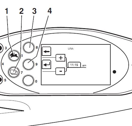 - Pritisnite programski gumb za vožnjo (1) menijski gumb (2), da se prikaže možnost TIME (ČAS). Izbiro potrdite s pritiskom vnos (4).