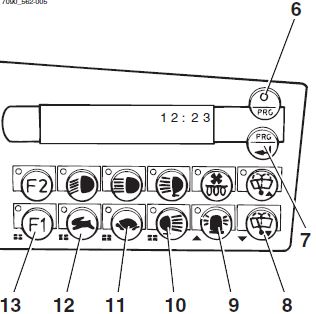 - Pritiskajte gumb programa za vožnjo (1) ali menijski gumb (2), dokler se na zaslonu ne prikaže želeni čas. Pri daljšem pritisku gumbov se hitrost pomikanja poveča v treh stopnjah.